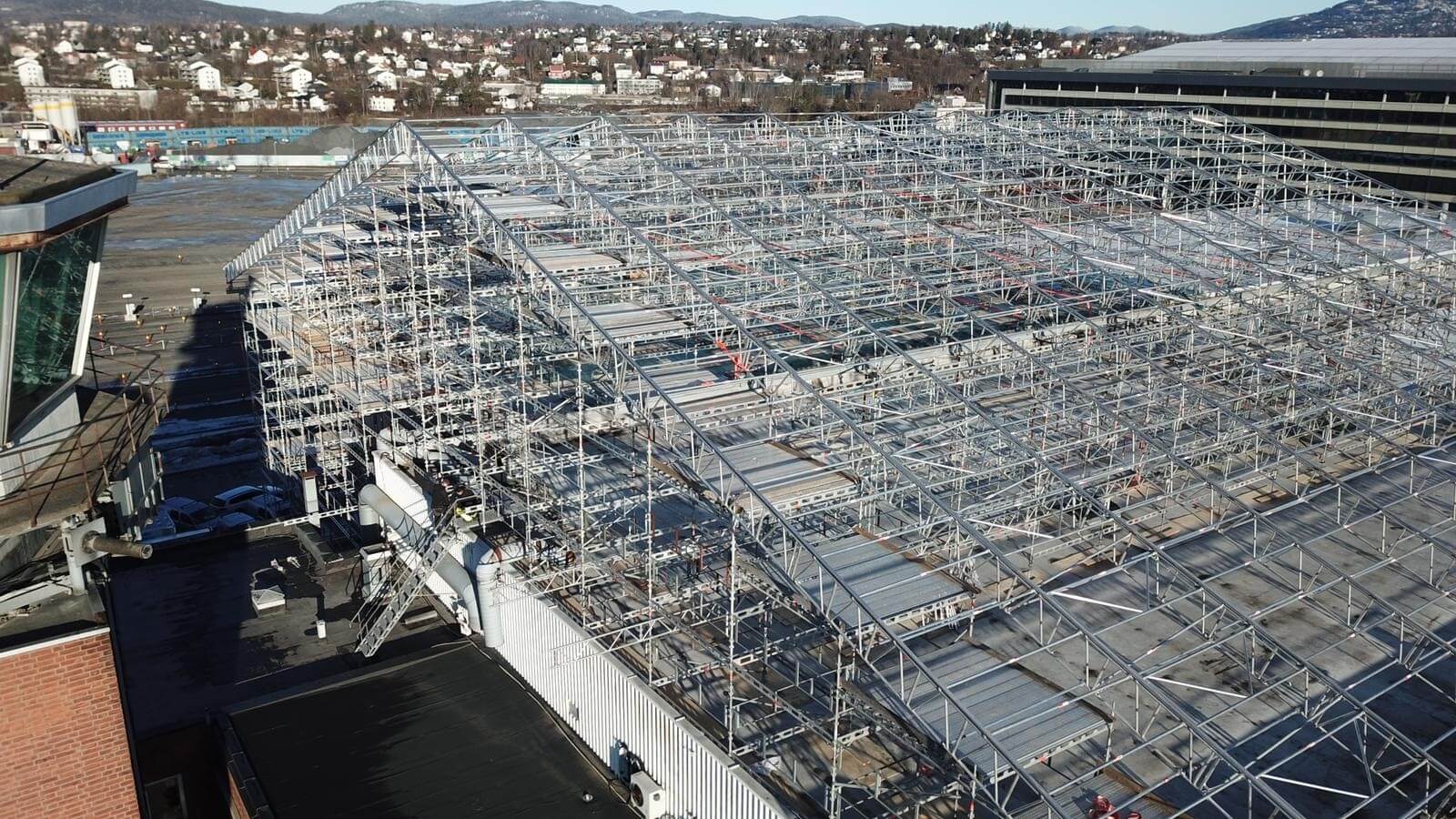 I med at taket kun er beregnet for å tåle 10cm med snø har vi også snøvakt hvor på dager med stort snøfall vil vi også kjøre rundt og måke snø om nødvendig slik at konstruksjonen ikke blir overbelastet.